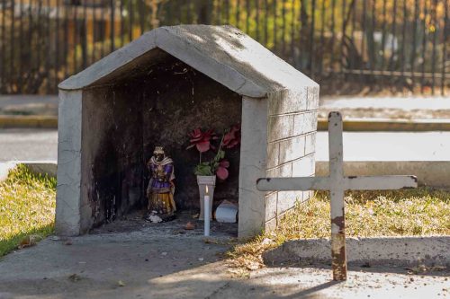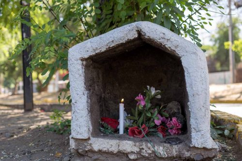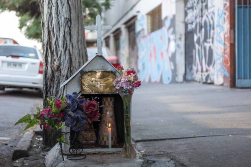 Animitas de barrio se construye como un recorrido por pequeños altares de memoria y fe popular insertos en la vida cotidiana. Son espacios donde la ausencia se convierte en presencia y cuidado colectivo. Durante mi infancia, siempre acompañaba a mi abuelo a la animita ubicada en la esquina de su casa. Cada vez que quedaba cesante, encendía una vela en silencio. En este recorrido, repito ese gesto en cada animita que fotografío, no para pedir algo, sino como un acto de recuerdo, en diálogo con su ausencia y en continuidad con su camino.
